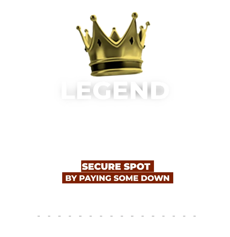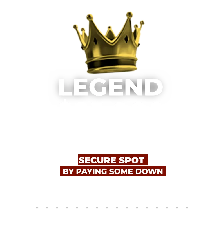 The first ever win-win mentorship that takes it up a notch. Tuition cannot be paid in full unless we help you profit. If I don't help you, you do NOT pay anything else other than your down payment. With Legend, you get more coaching calls, more masterminds, a custom roadmap, and higher support to where we both can accomplish our goals together.